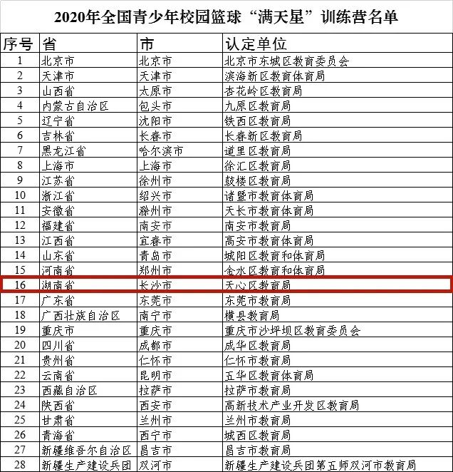 2020年全国青少年校园篮球特色学校名单(湖南)